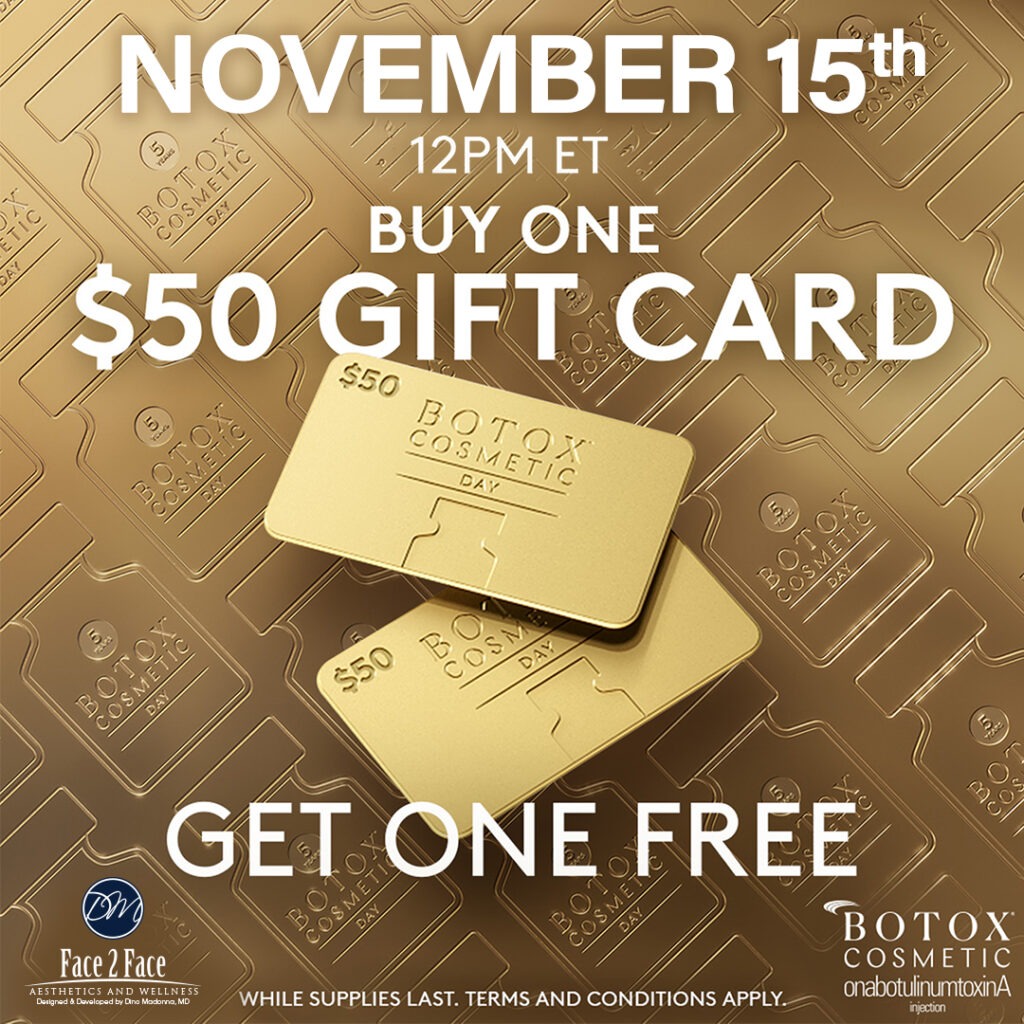 • Limit one BOTOX Cosmetic Day Buy One, Get One Free Gift Card Offer purchase per Member.